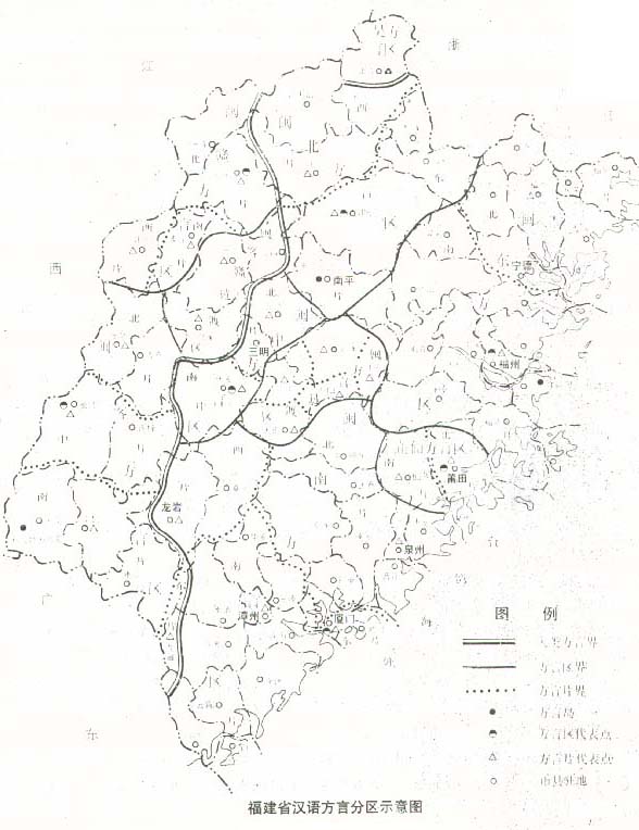 (一)七个主要方言区的分布 (二)其他边界方言和方言岛 福建境内汉语方言分区表
